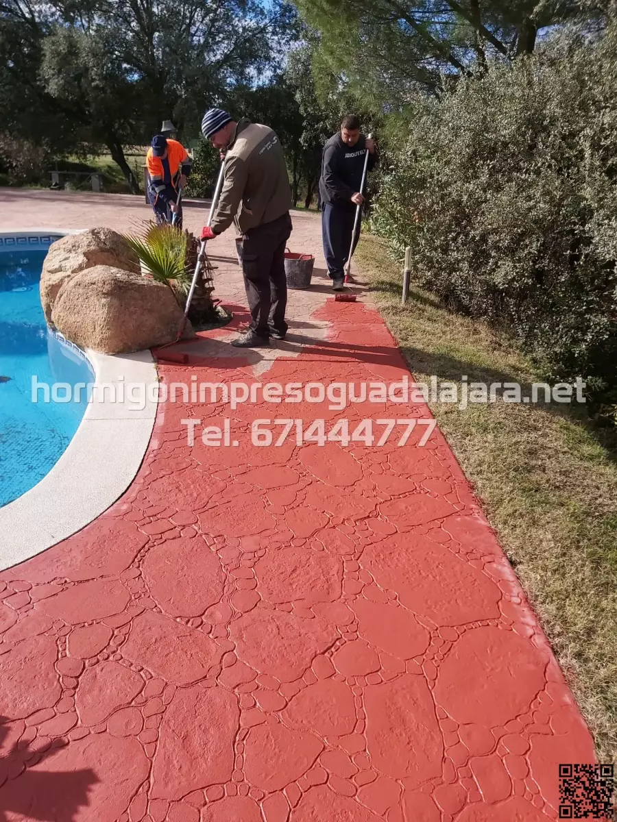 - Antideslizante: La textura del hormigón impreso lo convierte en una opción segura para zonas de tránsito peatonal y piscinas.